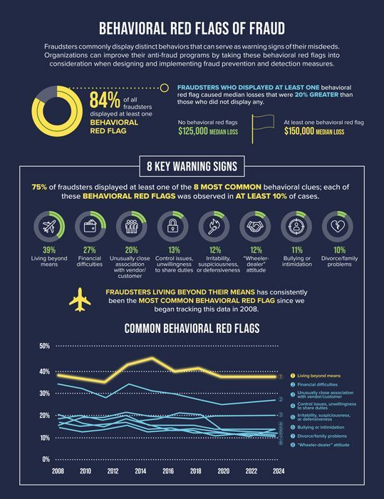 - 84% of all fraudsters displayed at least one behavioral red flag