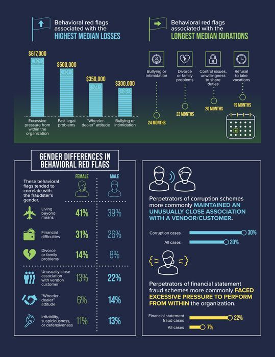 Three out of every four fraudsters (75%) displayed one or more of these top eight red flags.
